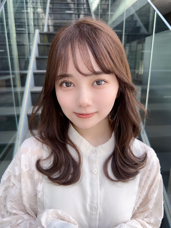 表参道、根津の美容院cooetfuu(クーエーフー)>ブログ>外ハネセミロング ヨシンモリ 韓国風 顔まわりレイヤーカット くびれヘアー アッシュベージュ ミルクティーベージュ